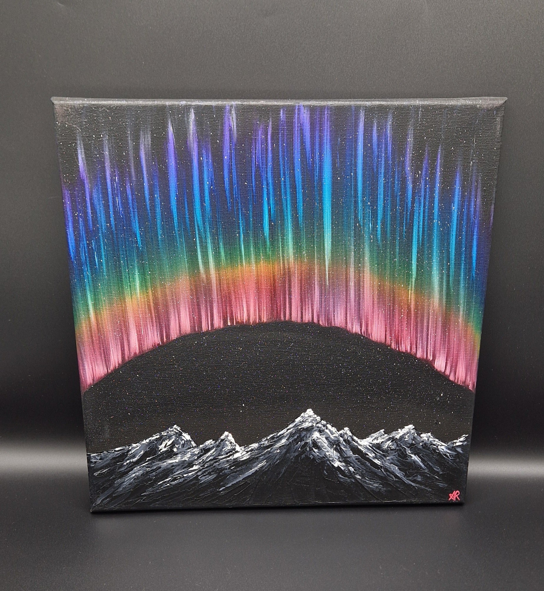 Oil painting of the Northern Lights, hand-painted by Anna Radacz in Reykjavík.