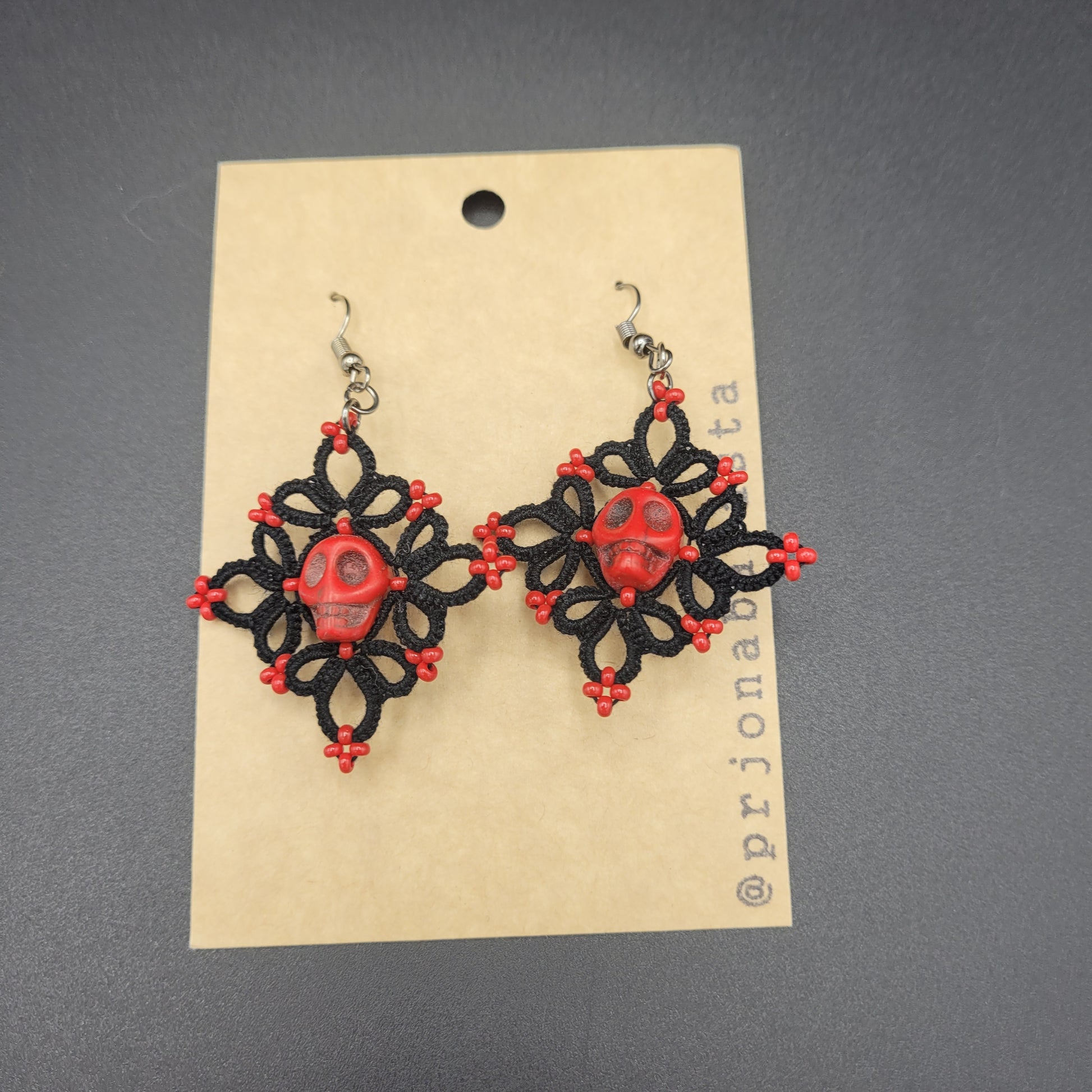 Tatting Lace Earrings - Skull Lace - by Prjónabarasta